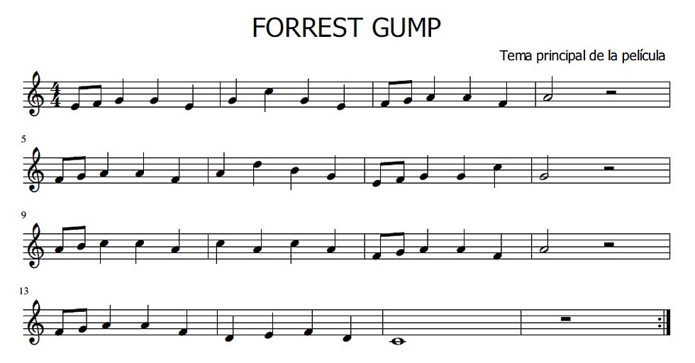 PARTITURA Y ACOMPAÑAMIENTO DE " B.S.O. FORREST GUMP"